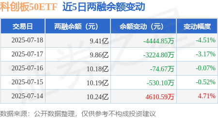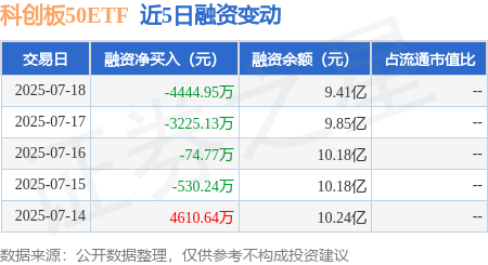 本站消息,7月18日,科创板50ETF(588080)融资买入7243.95万元,融资偿还1.17亿元,融资净卖出4444.95万元,融资余额9.41亿元。